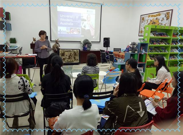 在同学们参观体验馆后,西澳大学商学院国际部主任Bev Partridge女士为同学们详细介绍了澳大利亚西澳洲首府珀斯及澳大利亚八大名校之一西澳大学。