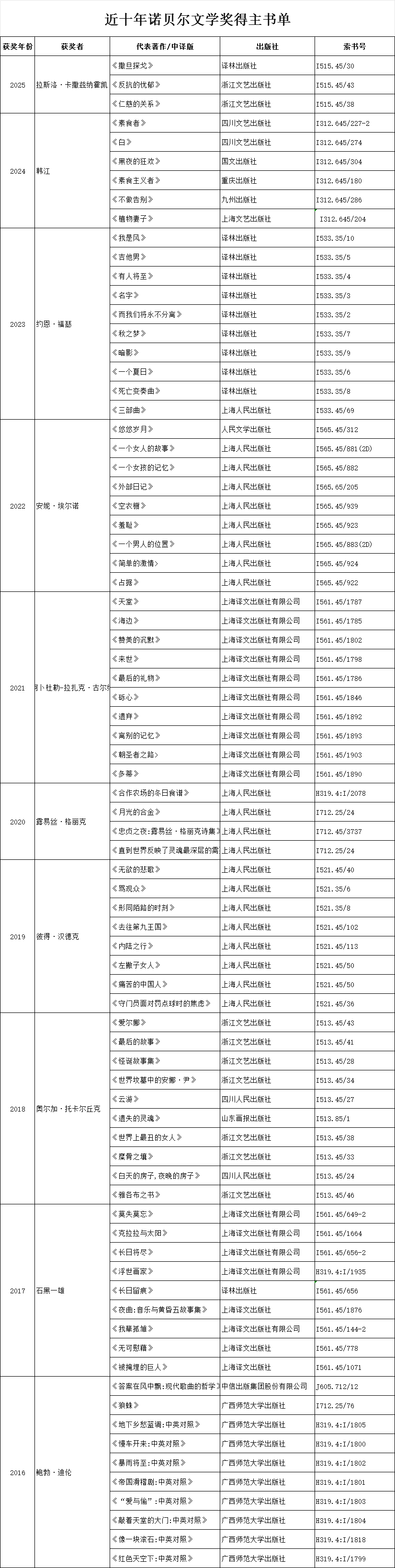 这十载的诺贝尔文学奖,致敬了一批“时代的书写者”。他们以笔为镜,映照流动的时代图景——迁徙与扎根、记忆与遗忘、身份与归属……这些全球性议题,在文学的土壤中生根发芽,等待与年轻的思想相遇。