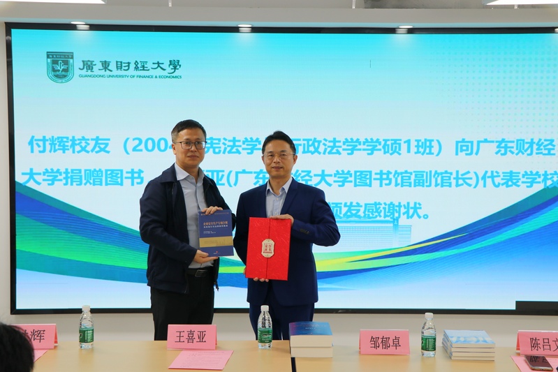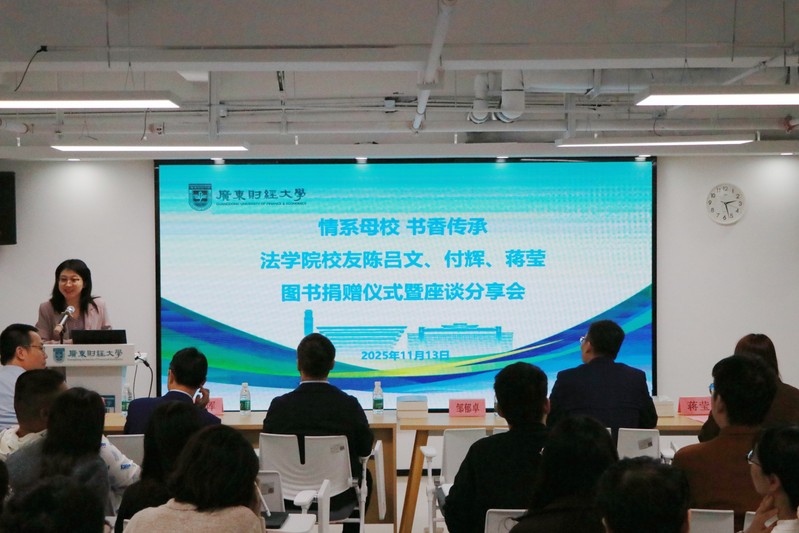 2025年11月13日下午,图书馆与法学院在广州校区凌云楼337学术报告厅联合举办校友图书捐赠仪式暨座谈分享会。图书馆副馆长王喜亚、法学院副院长邹郁卓出席活动。