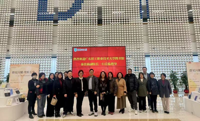 2026年1月6日下午,广东轻工职业技术大学图书馆副馆长秦佳楠一行来访我校广州校区图书馆,开展调研交流。我馆馆长王忠政、副馆长王喜亚及相关业务部门主任热情接待并参与了座谈,交流会于图书馆815会议室举行。